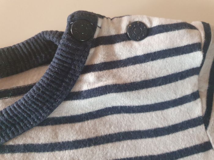 Taille 86 cm 2 pressions col. 1 bouton ou la couleur est partie légèrement.