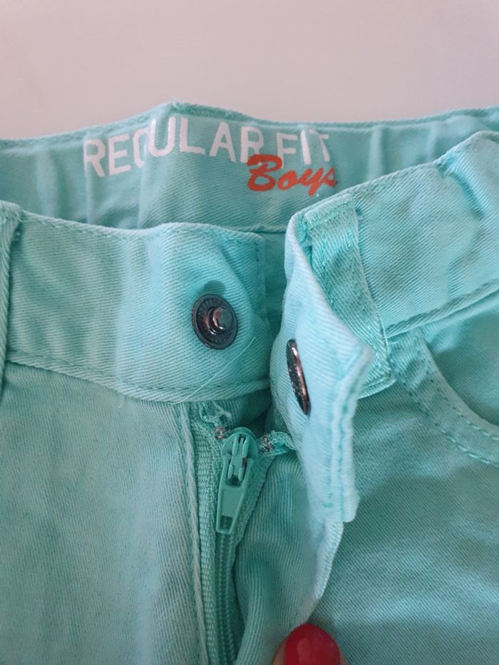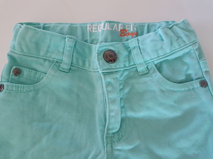 Vert clair Bouton pression plus braguette. Taille 98cm