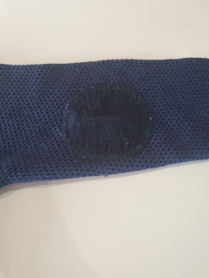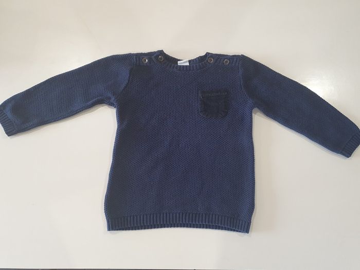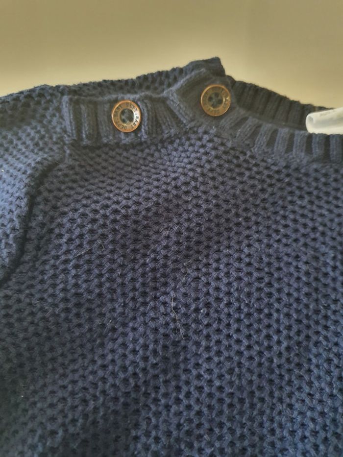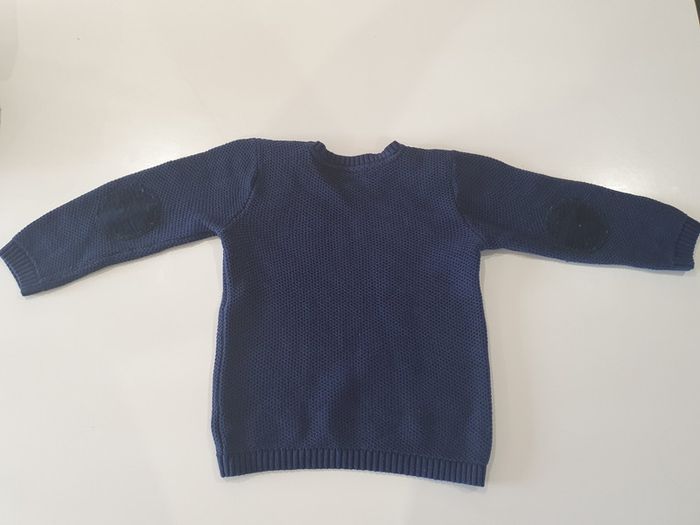 2 boutons sur chaque côté du col. Pièces aux coudes. Effet mailles Taille 92 cm