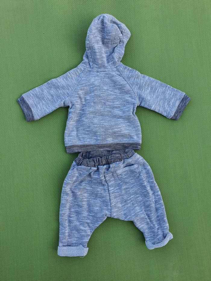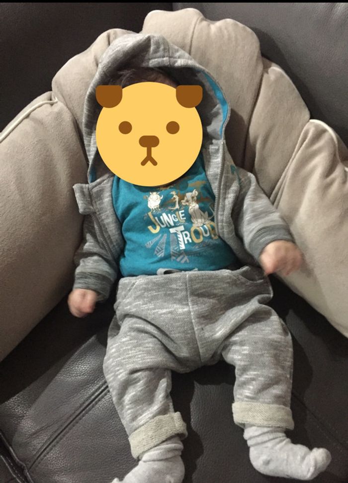 Ensemble 3 pièces 3 mois soit 60 cm Veste zippé avec capuche + pantalon 65% polyester 35% coton Tee-shirt manches longues 51% coton 49% polyester