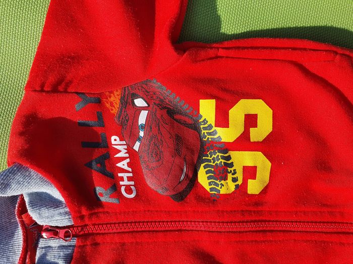Sweat zippé CARS. Flocage sur la poitrine à droite. Taille 2 ans soit 88 cm. 100% polyester