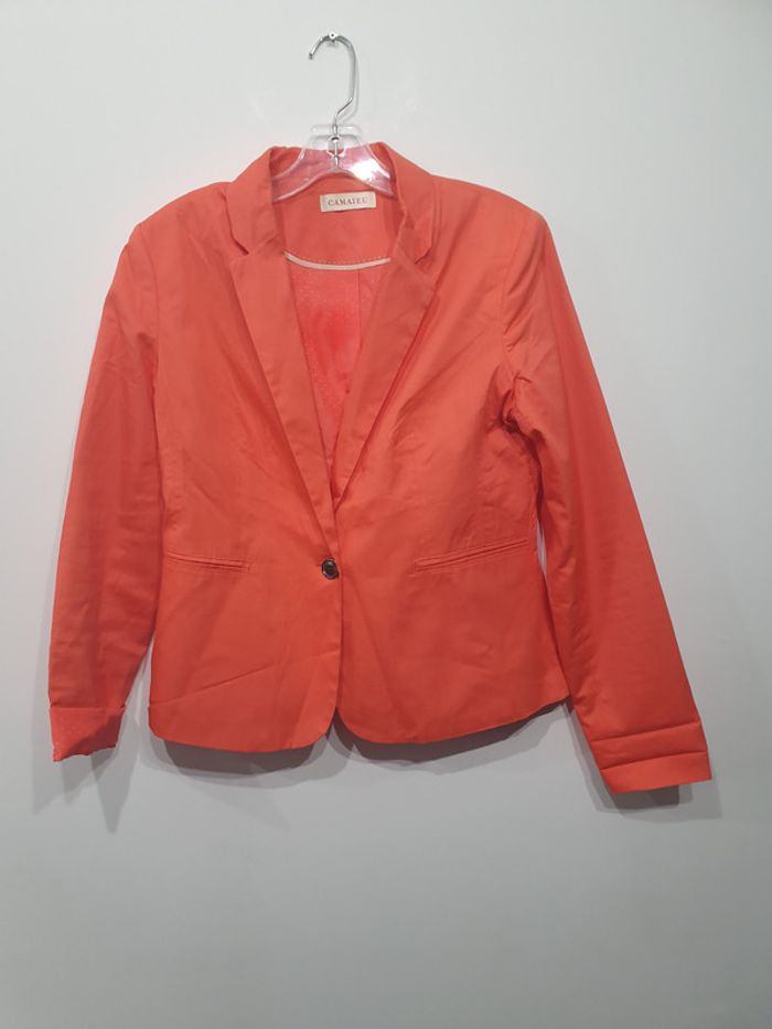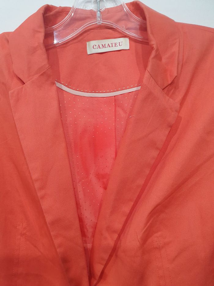 100% coton Doublure 100% polyester 2 taches, un ton sur ton au bras et une dans le dos. Vois 2 dernières photos
