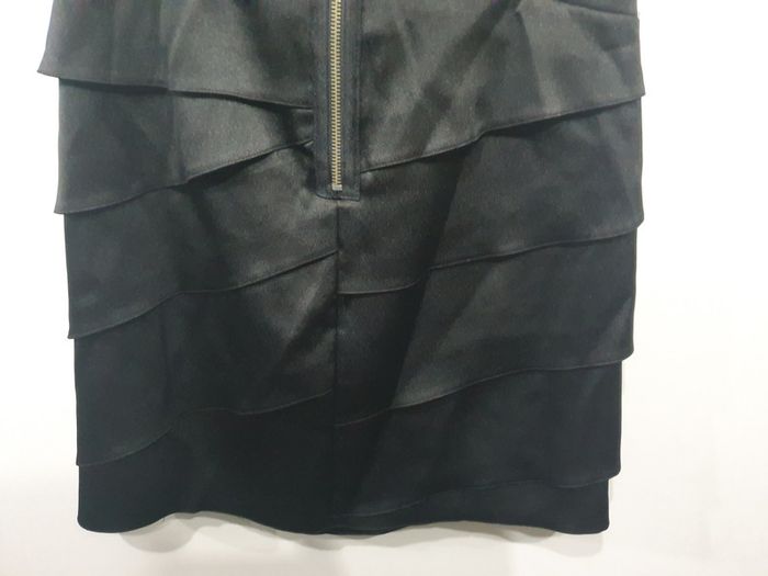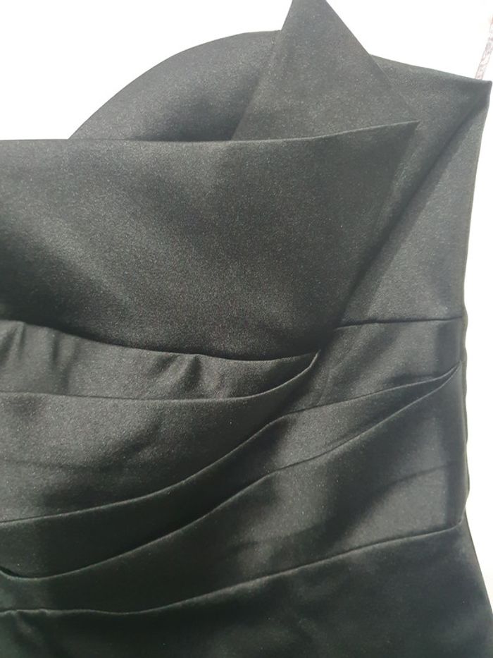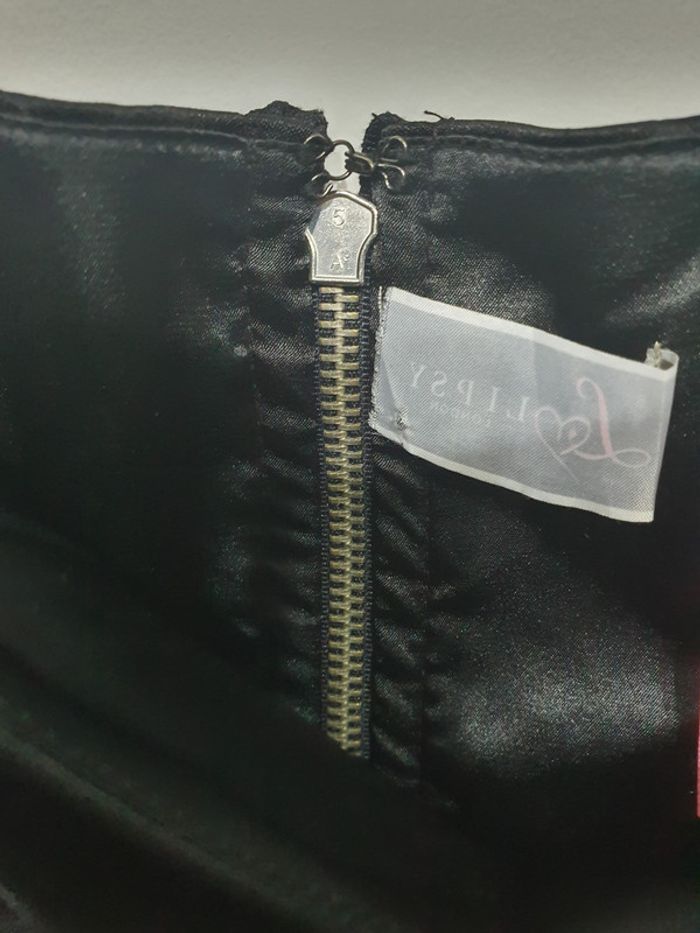 Effet satin. Fermeture éclair au dos avec une agrafe en haut de la fermeture pour un meilleur maintien. Etiquette partiellement décousu voir photo.
