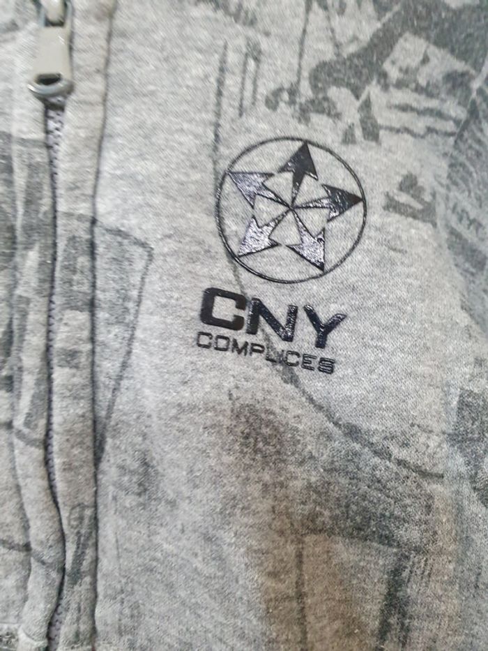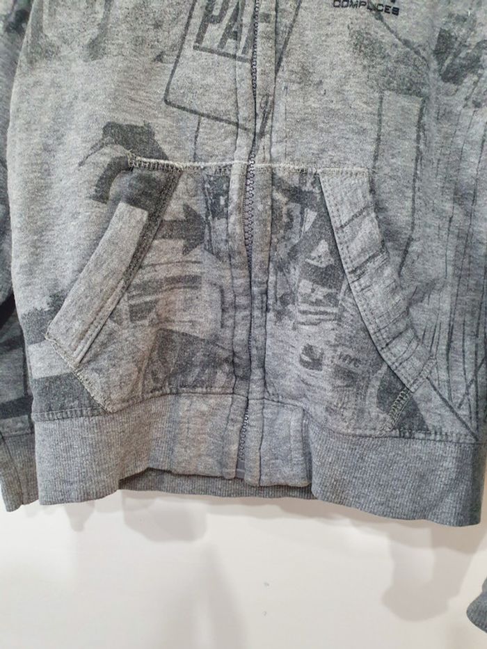 Sweat gris clair avec des motifs gris foncés Taille 4 ans soit 104 cm 55% coton 39% polyester 6% viscose