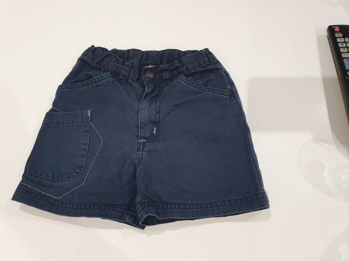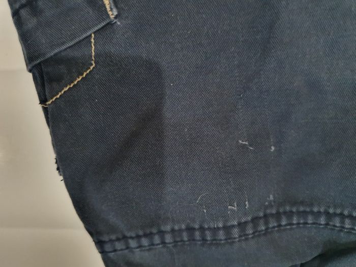 Short en jeans 2 pour devant, une sur le bas du short. Fils légèrement tiré sur une fesse voir photo
