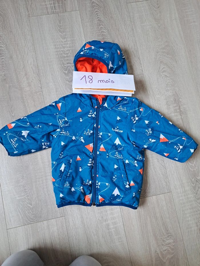 Tres bon etat manteau de ski 18 mois. Le manteau est réversible un côté orange un côté bleu a motif. Marque weedze. Possibilité de lot #stefgarcons18mois