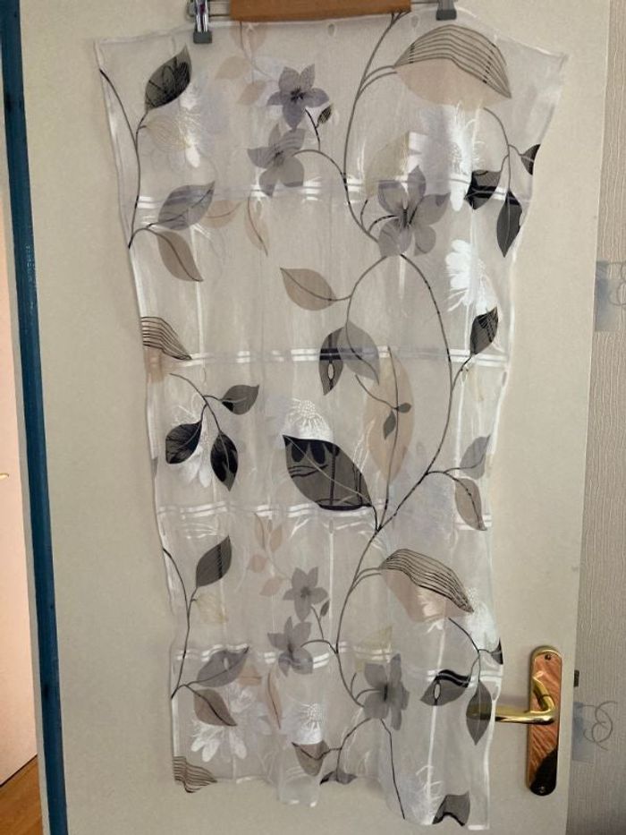 4 vitrages motif feuilles fleurs, deux paires de vitrages. Largeur 58 cm, longueur 1,03 m.