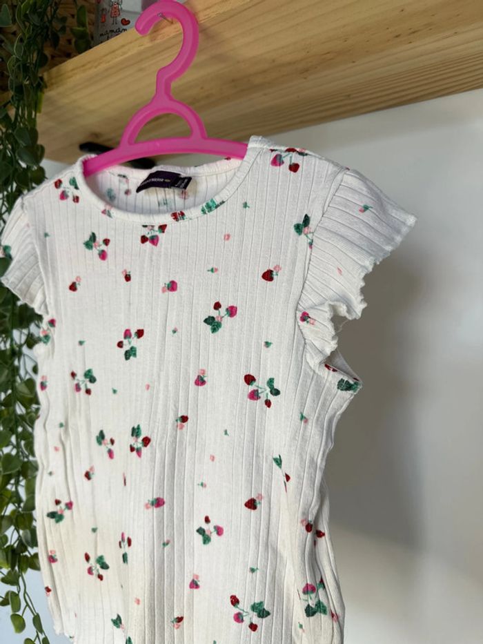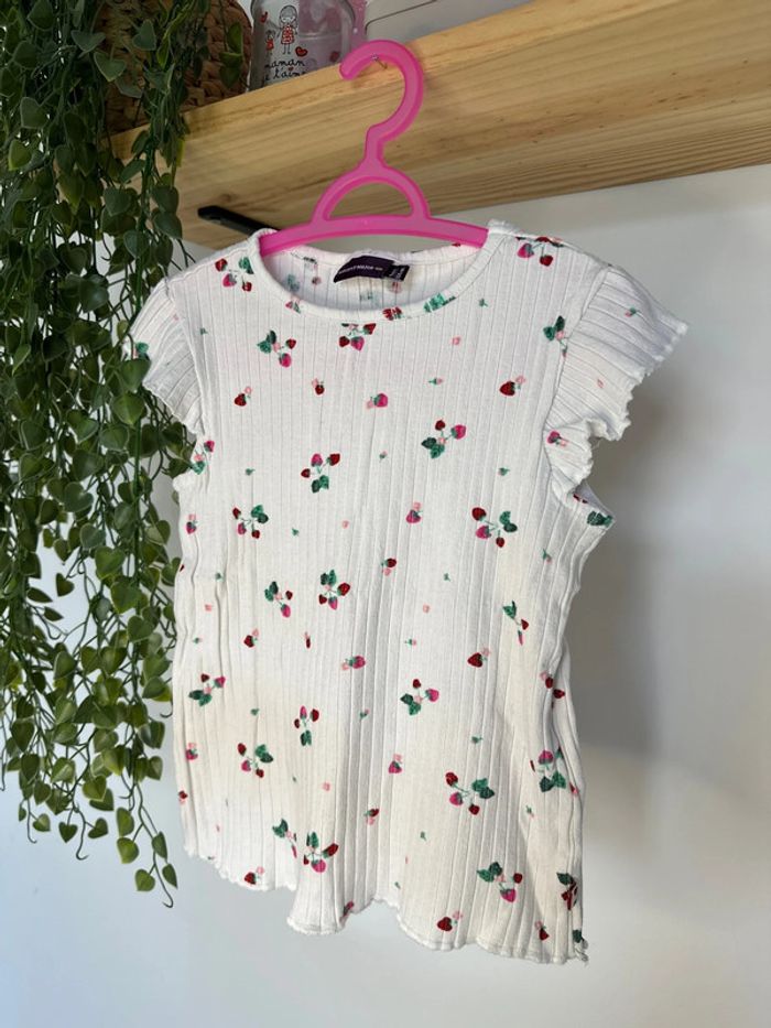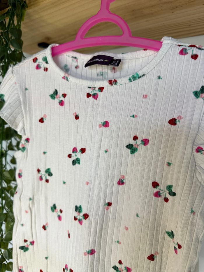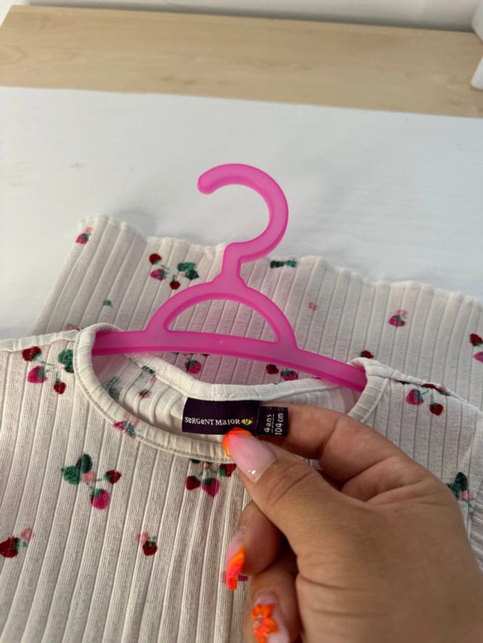 T-shirt manches courtes Blanc fraise rouge 4ans Sergent major Très bon état #vivi_famous4ans