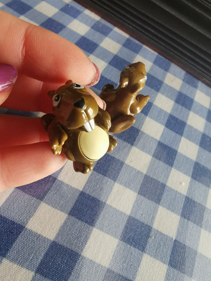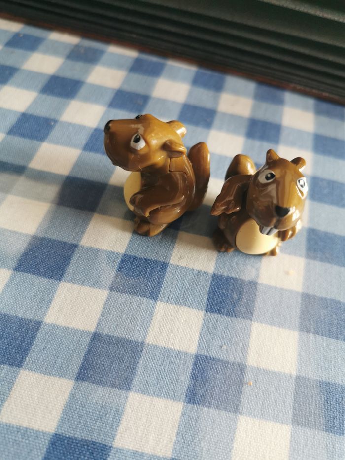 Lot de 2 castors figurines Kinder, en plastique, en très bon état, taille 3 cm, poids 11g.