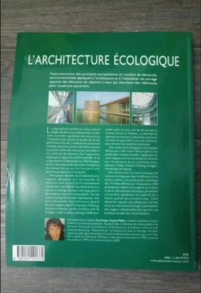 vends livre l'architecture écologique 29 exemples européens Si en Allemagne ou en Suisse, la démarche environnementale est acquise depuis longtemps en matière de construction, les premières opérations HQE ont vu le jour en France depuis peu. La nouvelle exigence environnementale consiste à maîtriser les impacts d'un bâtiment sur l'environnement extérieur et à créer un environnement intérieur satisfaisant. Les principaux thèmes en sont : le respect du site, l'optimisation du confort thermique et acoustique, la gestion de l'eau et de l'énergie, la réduction des nuisances de chantier et la maîtrise des déchets, et enfin, l'emploi de matériaux sains. La démarche environnementale est ici analysée dans ses aspects pratiques et techniques. Une trentaine d'exemples français et européens illustrent cette analyse à l'échelle d'un programme (logements, équipements, bâtiments d'activités) ou à celle de l'urbanisme (région, ville). Tous ces exemples pris en Allemagne, en Suisse, en Autriche, en Finlande, en Italie, en Grèce, en Angleterre ou aux Pays-Bas, contribuent à faire de ce livre un guide pratique à l'usage des maîtres d'ouvrages et concepteurs. #sylvaine88livres #histoire #écologique #architecture #etudiant #europe #france #environnement #Aspect #construire #bois #construction #agence #politique #science #developpement #durable #écologie #europe N'hésitez pas à regarder l'ensemble de mon dressing je fais -20% sur les lots