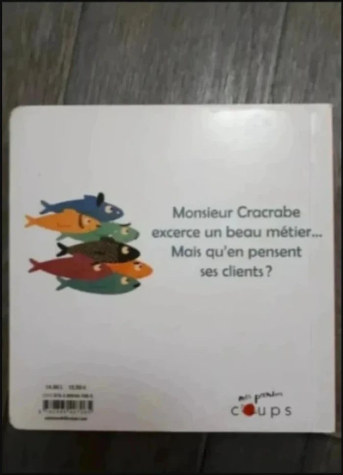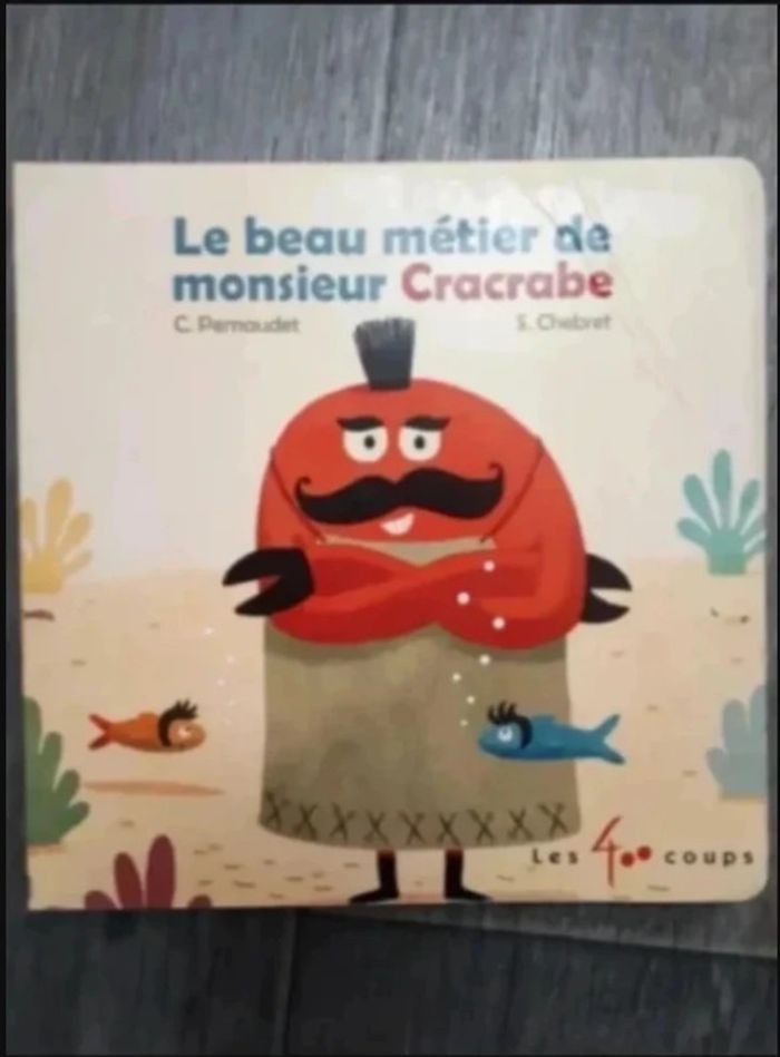 Vends livre enfant Le beau métier de monsieur Cracrabe Christophe Pernaudet Sébastien Chebret 18 pages cartonnées 17,5 x 17,5 cm Monsieur Cracrabe a une passion peu commune pour un crustacé : c’est un virtuose de la coiffure. Entièrement dévoué à son art, il coupe, il taille et il recoupe, pour un résultat qui laisse son client sans voix ! Une histoire courte aux illustrations hilarantes et dont la chute ne manquera pas de faire rire aux éclats. dès 1 an très bon état ( marque de plis sur la couverture avant) pages cartonnées Les 400 coups #sylvaine88livres #animaux #crabe #coiffeur #metier #humour #eau #mer #ocean #enfant #album #livrecartonné #passion #coiffure #art #coupe #oursin #poisson #histoirecourte #drole #rire #humour N'hésitez pas à regarder l'ensemble de mon dressing je fais -20% sur les lots
