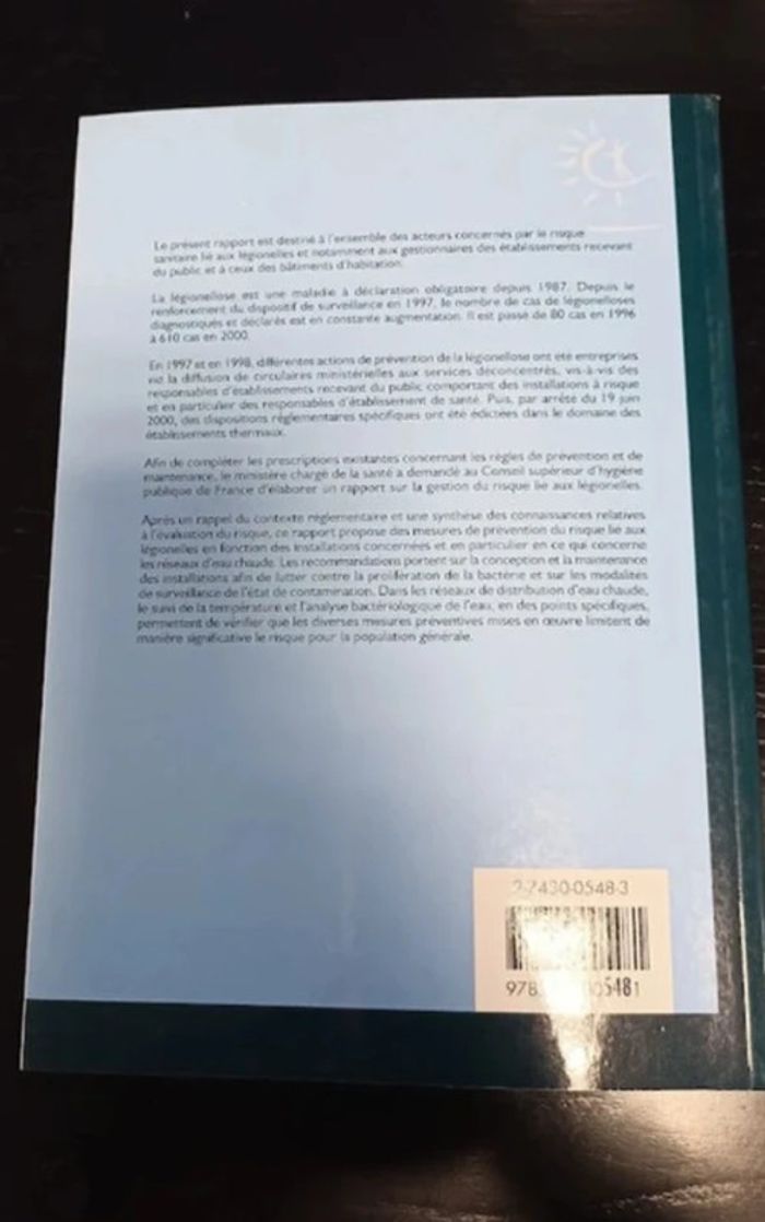 vends livre gestion du risque lié aux légionelles CSHPF Le présent rapport est destiné à l'ensemble des acteurs concernés par le risque sanitaire lié aux légionelles et notamment aux gestionnaires des établissements recevant du public et à ceux des bâtiments d'habitation très bon état #sylvaine88livres #legionelle #risque #sanitaire #batiment #public N'hésitez pas à regarder l'ensemble de mon dressing je fais -20% sur les lots