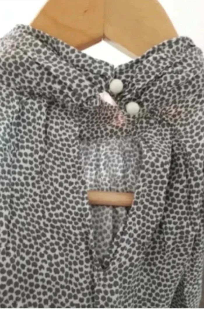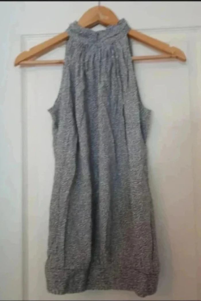 t-shirt femme blanc à pois gris tour de cou sans manches taille S / 36 / 8·Très bon état·Camaïeu - photo numéro 2