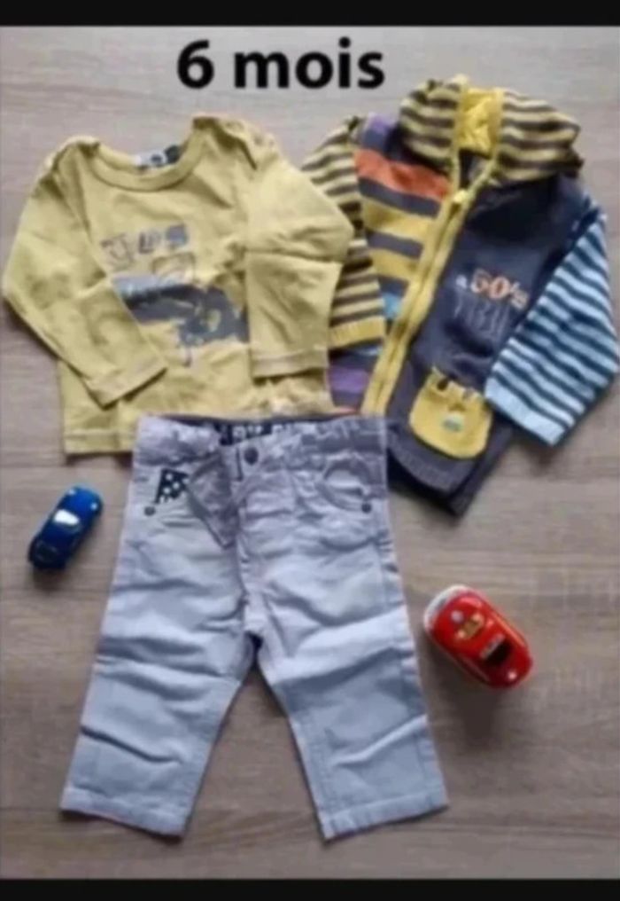 Vends ensemble 6 mois Ensemble composé - d'un pantalon gris clair GEMO - d'un t shirt manches longues vert KIDS - un gilet à capuche zippé épais gris vert, bleu ORCHESTRA très bon état #sylvaine88bebesixmois #pantalon6moisgarçon #6mois #pantalon6mois #pantalon #giletbebe6mois #gilet6moisbebe #gilet #zippé #fermeture #capuche #giletacapuche #giletzippe #ensemble6mois #ensemble #tshirt6mois #tshirtmancheslongues6mois #tshirt #mancheslongues #ml #gemo #gemo6mois #orchestra #orchestra6mois #kids #kids6mois #printemps #misaison N'hésitez pas à regarder l'ensemble de mon dressing je fais -20% sur les lots