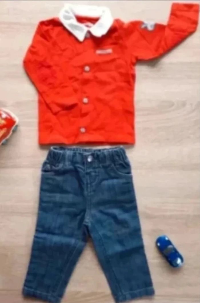 ensemble t-shirt polo manches longues et pantalon jean 3-6 mois / 62 cm Très bon état Orchestra