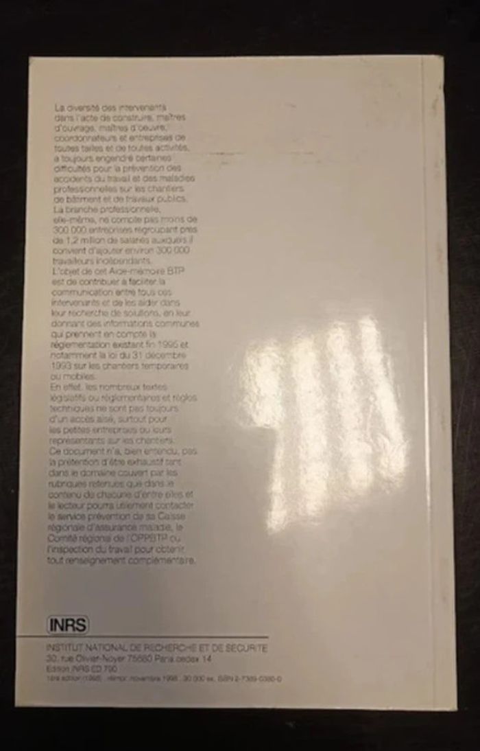 aide-mémoire BTP Prévention des accidents du travail et des maladies professionnelles Très bon état - photo numéro 1