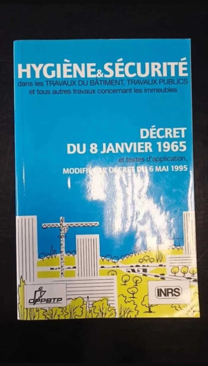 vends livre Hygiène & sécurité dans les travaux du bâtiment travaux publics et tous autres travaux concernant les immeubles décret du 8 janvier 1965 et textes d'applications Organisme Professionnel de Prevention du Bâtiment et des Travaux Publics (OPPBTP) inrs #sylvaine88livres #conception #reference #technique #reglementation #norme #architecture #securite #decret #batiment #hygiene #travaux N'hésitez pas à regarder l'ensemble de mon dressing je fais -20% sur les lots