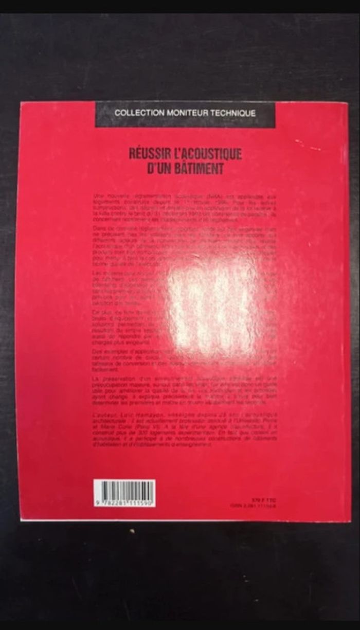 Vends livre Réussir l'acoustique d'un bâtiment