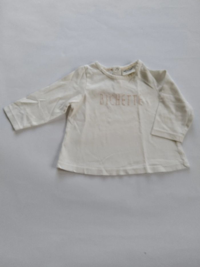 tee shirt blanc manches longues Tao fille 6 mois
