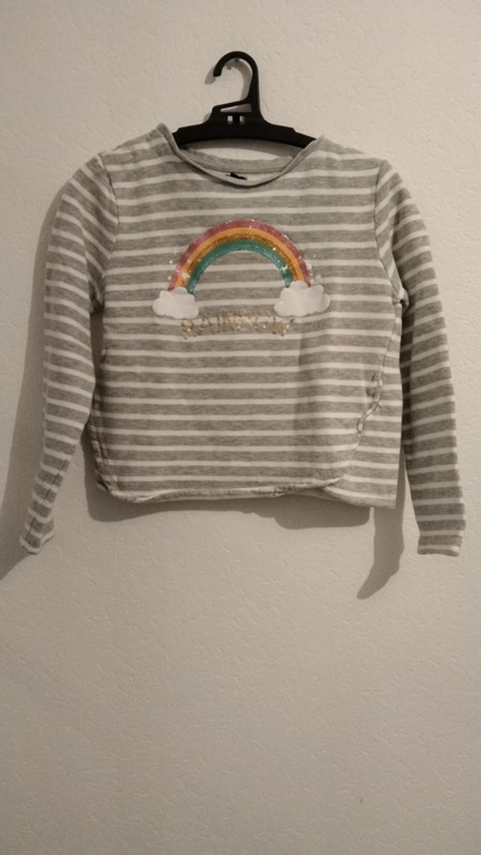 pull rayé arc en ciel paillettes fille 10ans Kiabi - photo numéro 1