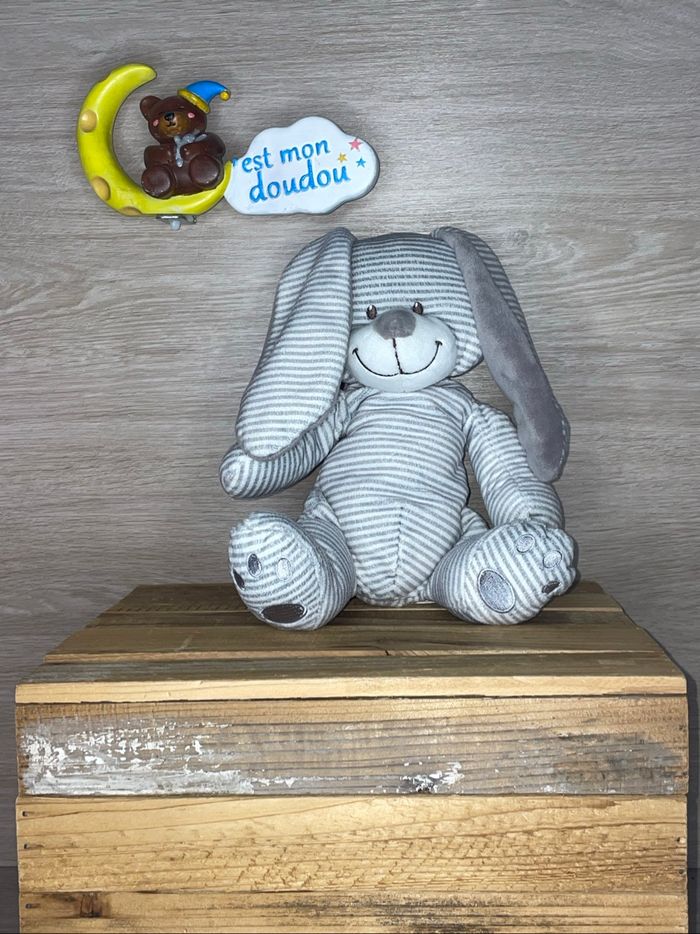 🌺 Bonjour, vendeuse professionnelle 🌺 Je vous propose le Doudou suivant : Marque : nicotoy Genre : lapin Format : peluche Mesures : 25cm Coloris : gris Motifs/Broderies: rayures État : très bon Stock : 1 RÉFÉRENCE : NIC196 #nicotoy_cestmondoudou