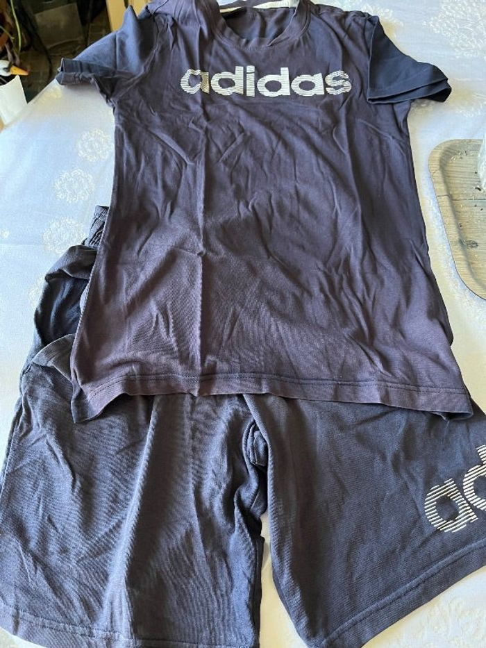 Ensemble short et teeshirt homme taille S marque Adidas pas déchiré ni taché mais la couleur est passé à certains endroits voir photo mais peu encore être porté