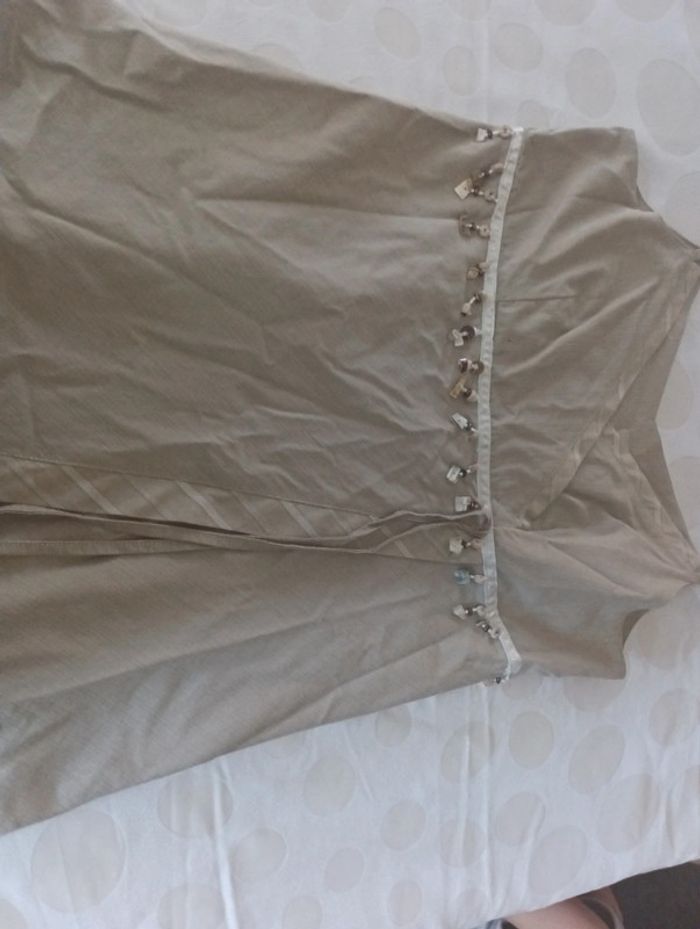 Tee shirt débardeur femme lin et coton Tunique comette taille 38 asymétrique perles et sequins - photo numéro 2