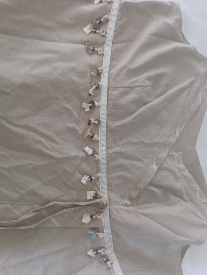 Tee shirt débardeur femme lin et coton Tunique comette taille 38 asymétrique perles et sequins - photo numéro 7