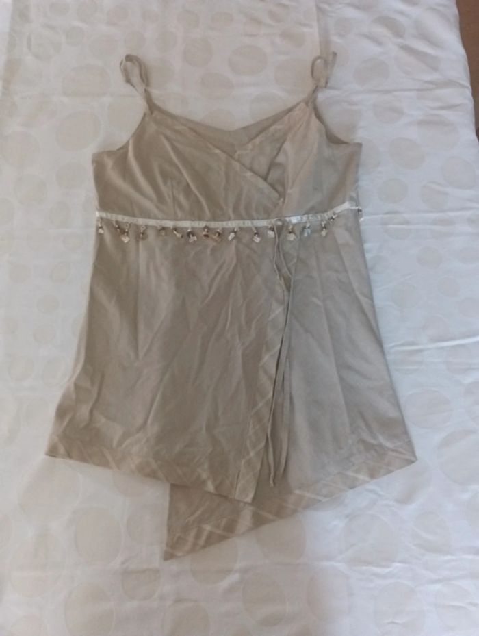 Tee shirt débardeur femme lin et coton Tunique comette taille 38 asymétrique perles et sequins - photo numéro 1