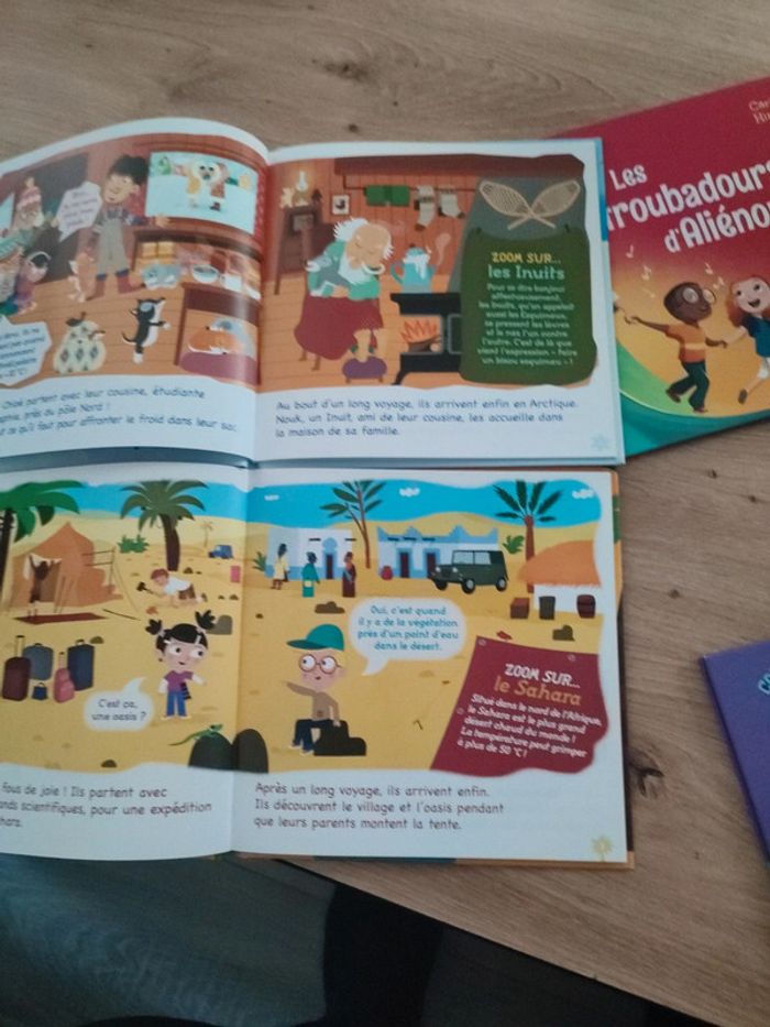 Histoire: - le djembé qui fait danser - les troubadours d'Aliénor - l'accordéon marchand de bonheur Les petits voyageurs a l'aventure : - la piste du désert - la course sur la banquise Comment et pourquoi : - Comment ? - les animaux les plus malins du monde Très bon état Plusieurs livres en ligne, n'hésitez pas à faire des lots.