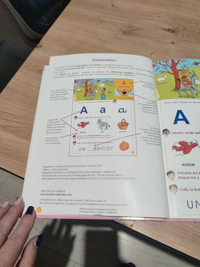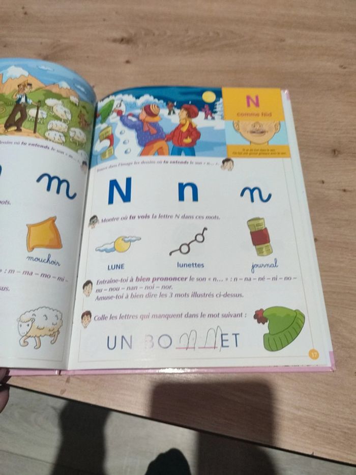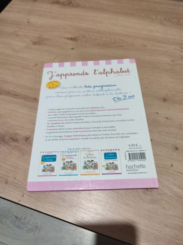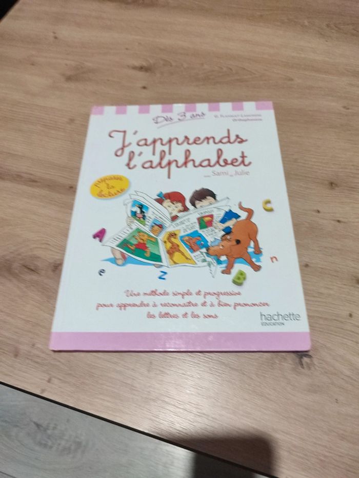 Livre éducatif pour apprendre l'alphabet. En bon état mais les étiquettes de lettre sont déjà collé et ma fille a entouré au stylo dans les images. Voir photo. Mais peu encore être utilisé.