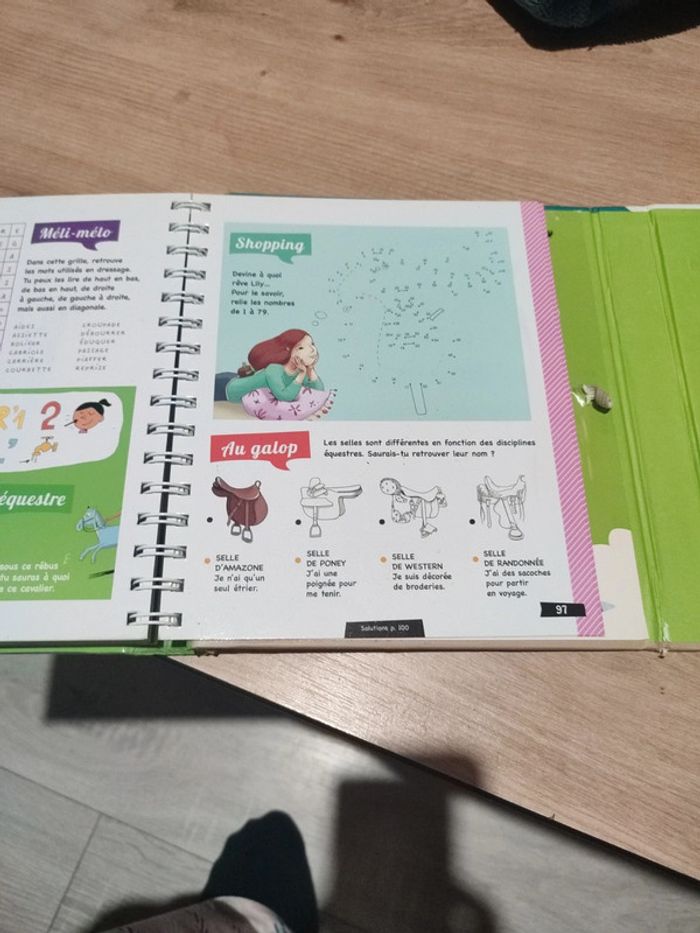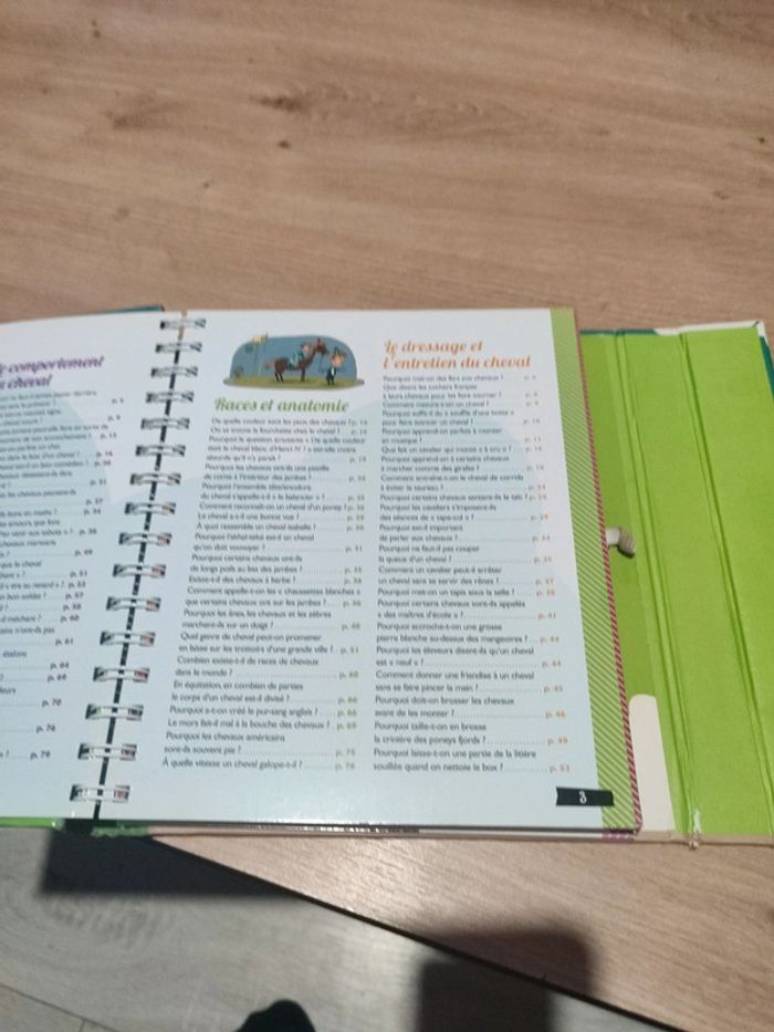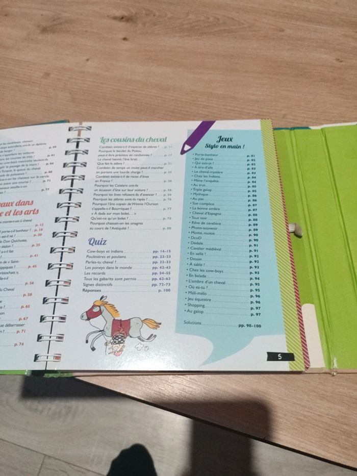 Super livre avec 150 questions réponses sur les chevaux et plusieurs jeux a faire au feutre effaçable (non fourni). En très bon état. Plusieurs livres sur mon vinted n'hésitez pas à faire des lots !