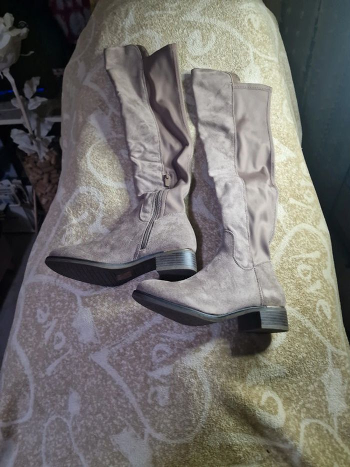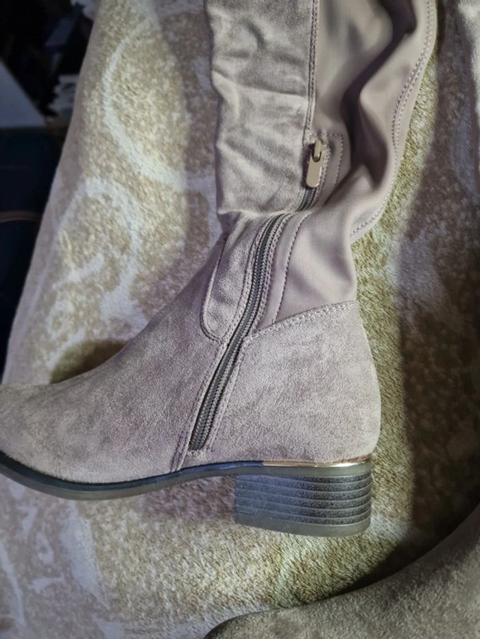 Jolie paire de bottes marron, neuves, bi-matiere, fermeture par zip