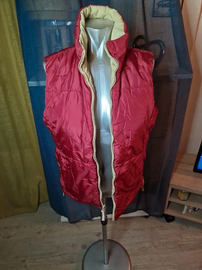 Jolie doudoune sans manches, BURTON, réversible 1 côté beige ( fausses poches ), 1 côté bordeaux avec 2 poches a zip, taille unique va jusque 40 petit 42 si vous la fermez pas