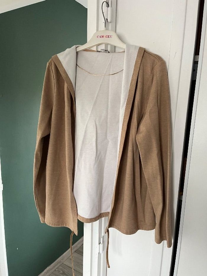 Gilet street one beige et blanc taille 42 avec capuche neuf