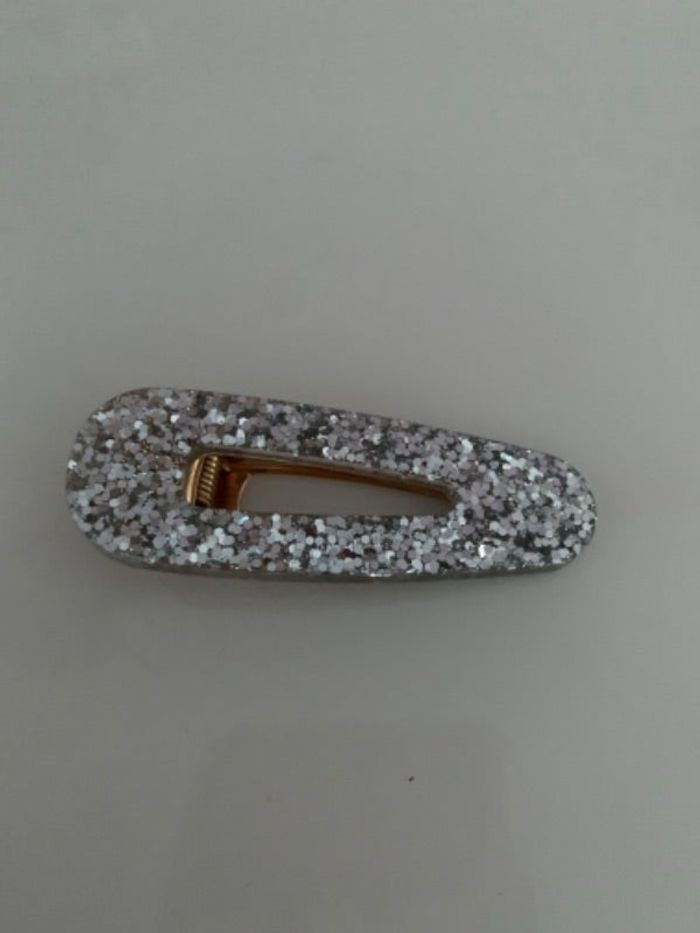 Pince à cheveux à paillettes argenté fait main en résine