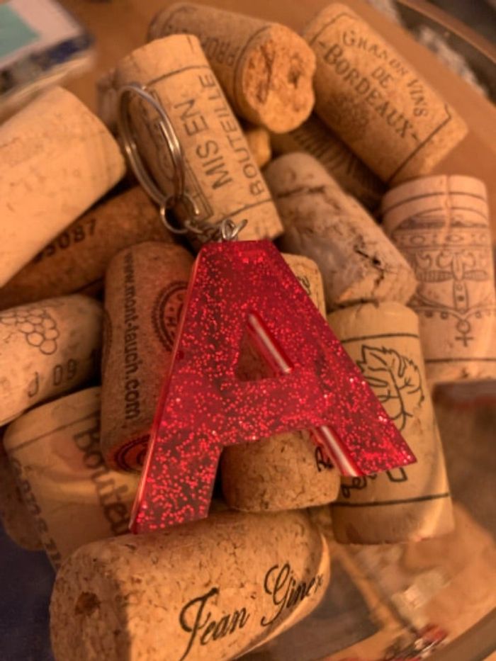 Porte clé lettre A rouge à paillettes fait main en résine neuf