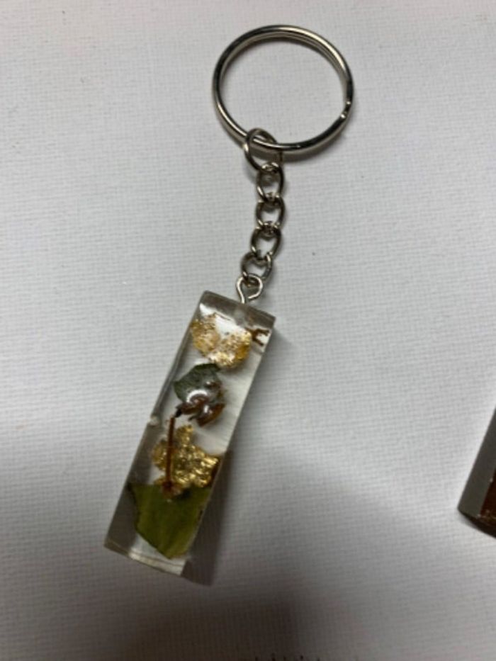 Porte clé lettre I avec fleurs séchées fait main en résine neuf