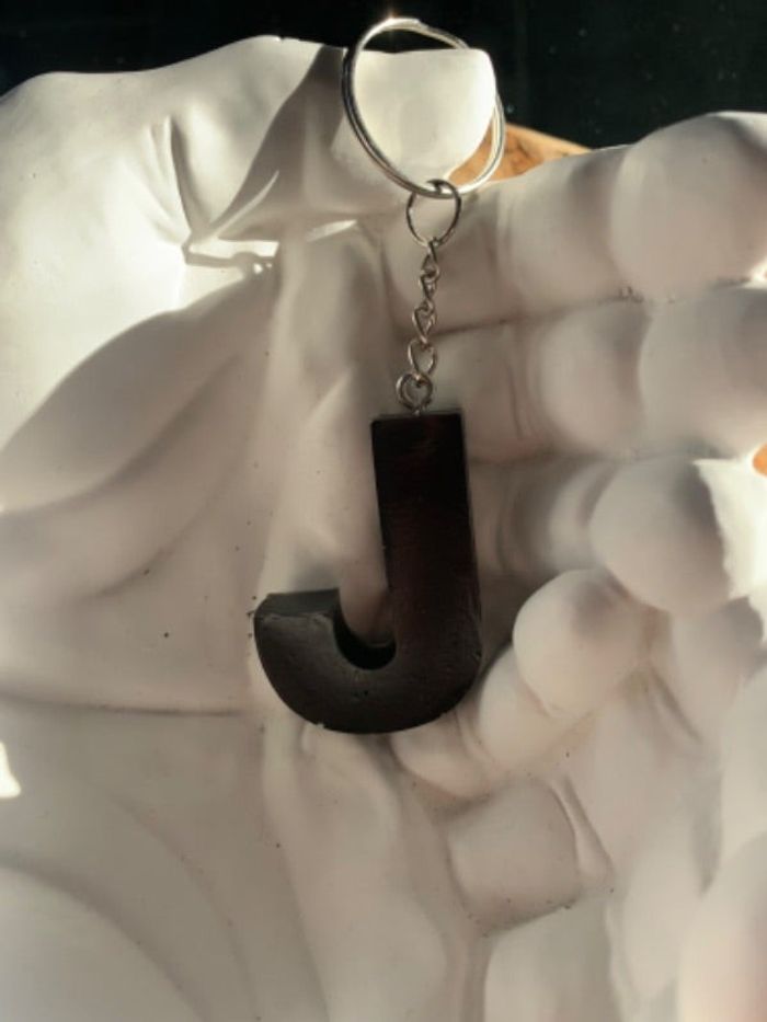 Porte clé lettre J noir fait main en résine neuf