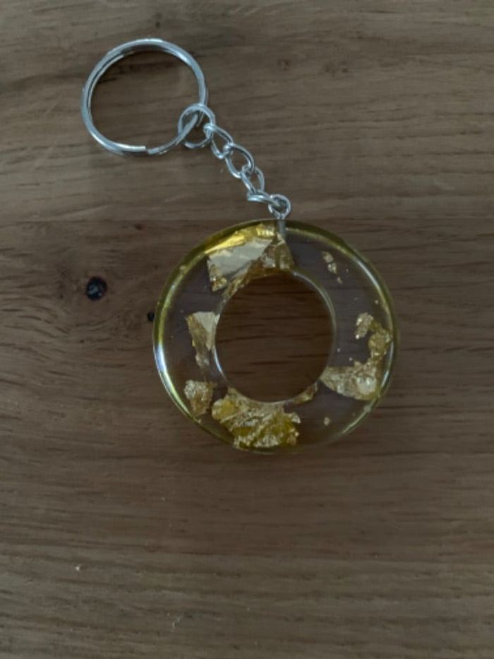 Porte clé lettre O transparent avec feuilles doré fait main en résine neuf