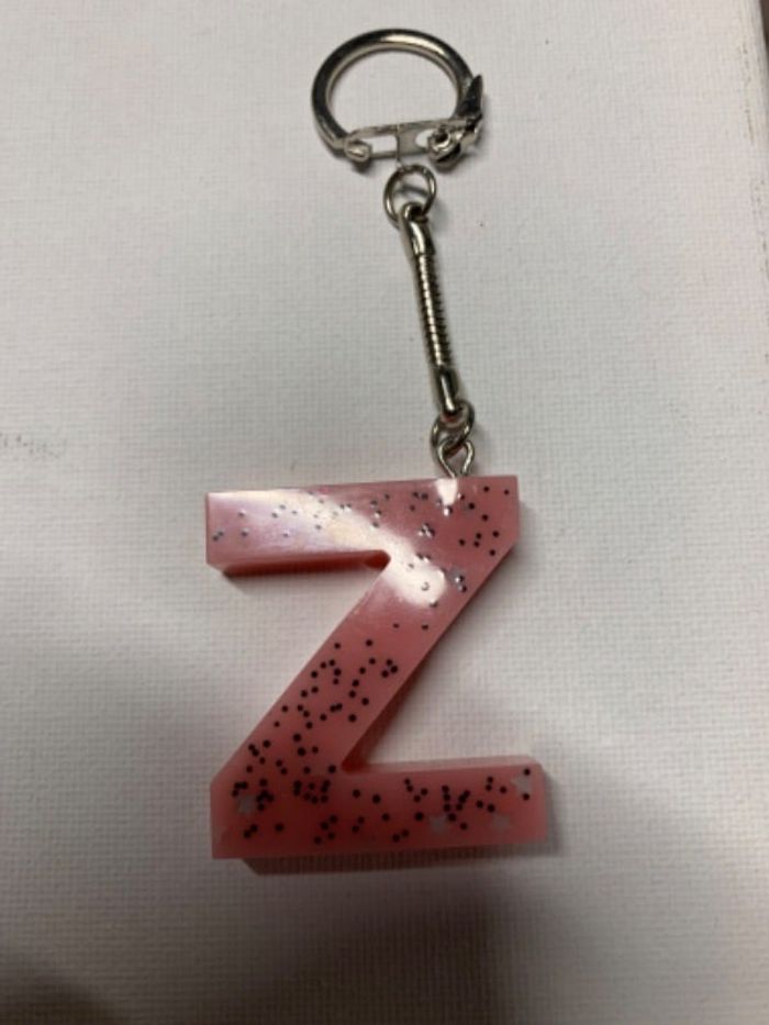 Porte clé lettre Z rose à paillettes noir fait main en résine neuf