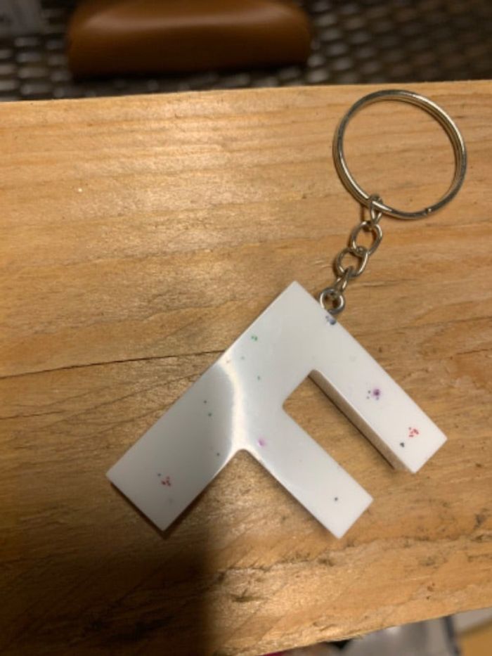 Porte clé lettre F blanc avec différentes couleurs fait main en résine neuf