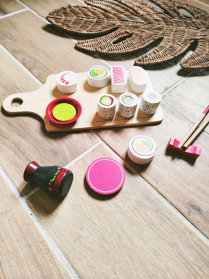 🍣Dinette plateau de sushis et makis à scratch sur plateau en en bois JB1588