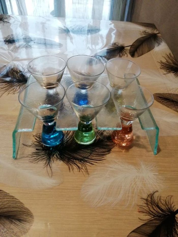 6 verres à liqueur avec son support.