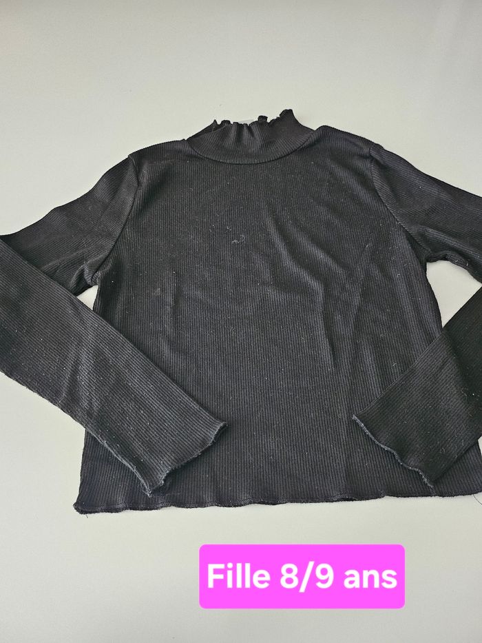 Haut manches longues avec col haut noir. Marque : Primark Taille: 8/9 ans