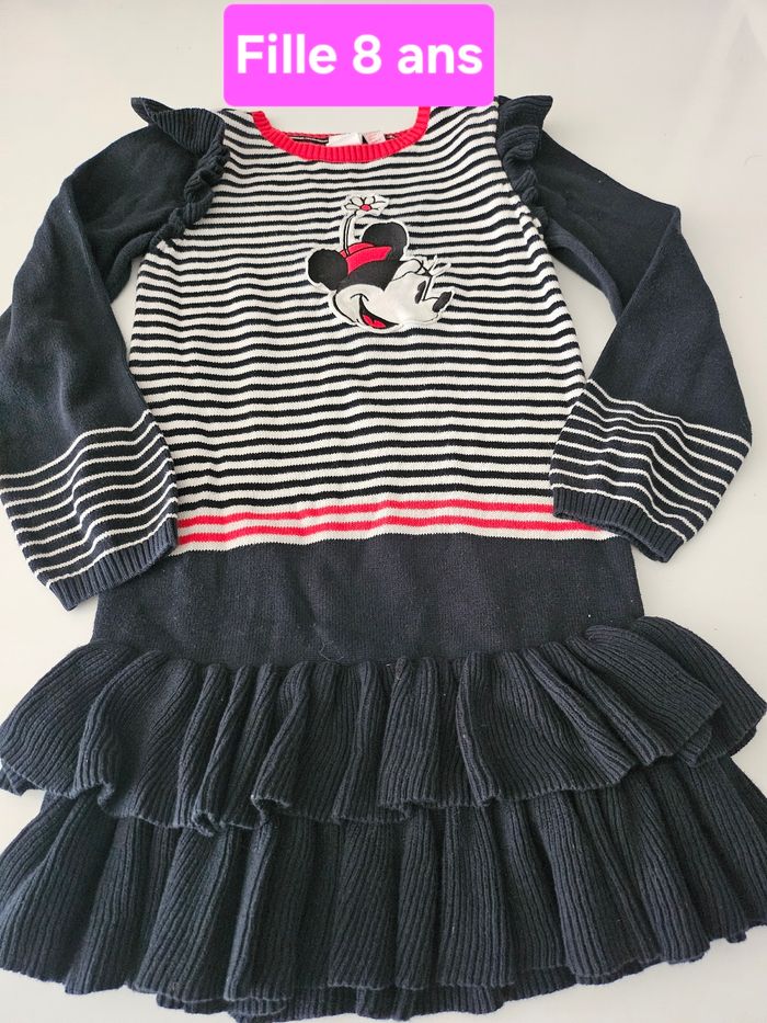 Robe chaude mi longue bleue blanche et rouge. Tête minnie devant. Marque : Disney Orchestra Taille : 8 ans