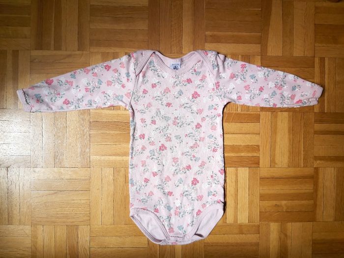 Body manches longues, rose pâle & fleuri, de la marque Petit Bateau. Taille 18mois, 81 cm