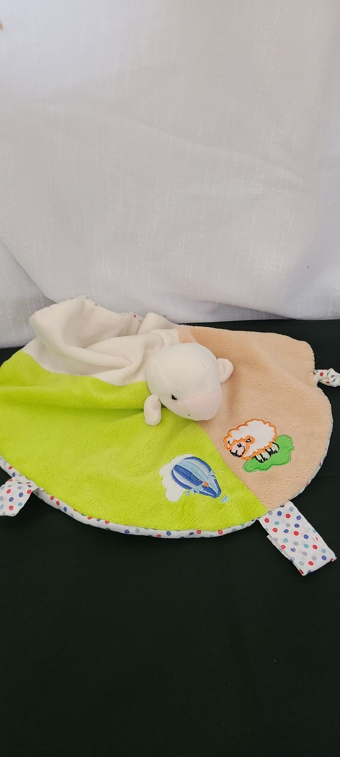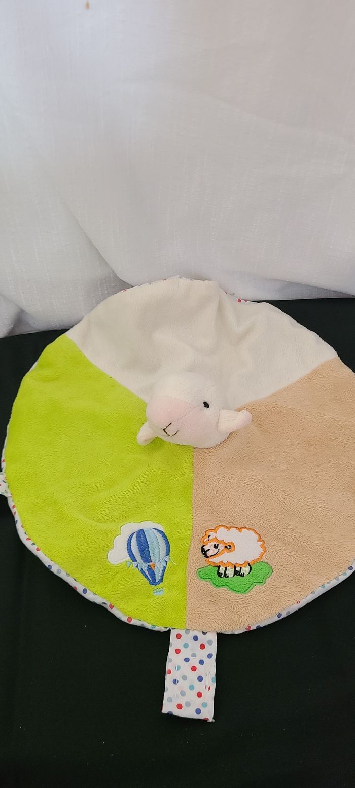 Doudou plat mouton agneau rond beige vert écru envers à pois Roda Rodadou - photo numéro 1