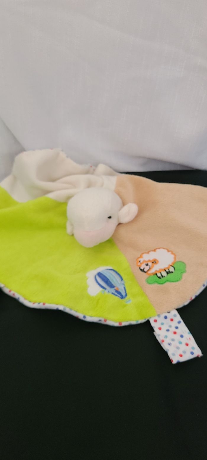 Doudou plat mouton agneau rond beige vert écru envers à pois Roda Rodadou - photo numéro 2