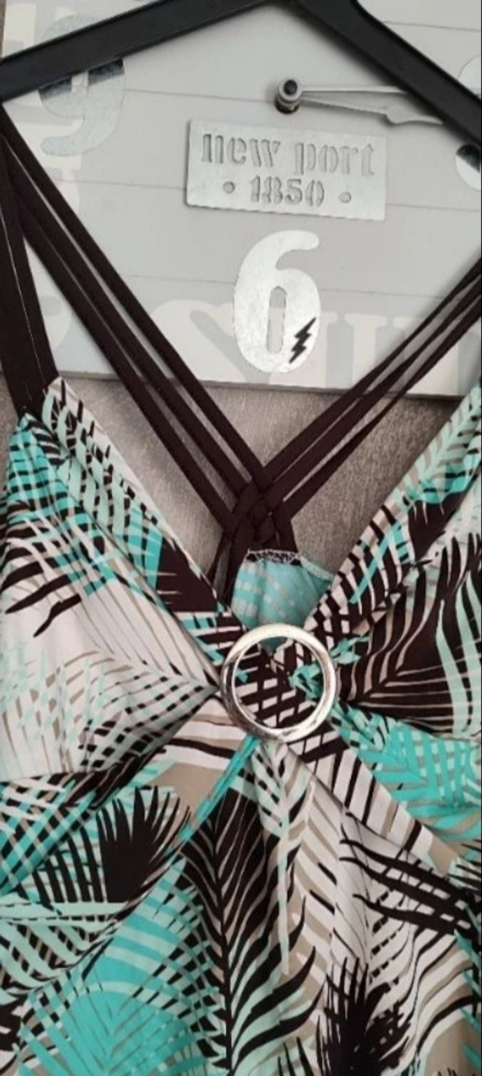 Taille plutôt petit à la poitrine Mis une fois Largeur sous aisselles 44 cm, maille extensible, longueur 72 cm Maison non fumeur sans animaux